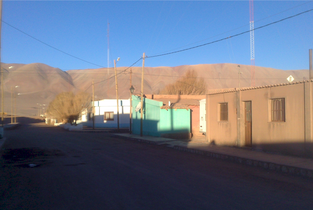 Llegamos a San Antonio de los Cobres y paramos a comer algo en un comedor típico de viajeros. Estábamos solos; nos sentamos y una señorita nos vino a atender. Luego de tomar el pedido, encendió la TV y la puso a altísimo volumen. Esta es una costumbre que tienen para los camioneros y viajantes que suelen parar allí, pero para nosotros era algo muy desagradable, por lo que me dispuse a bajar el volumen.